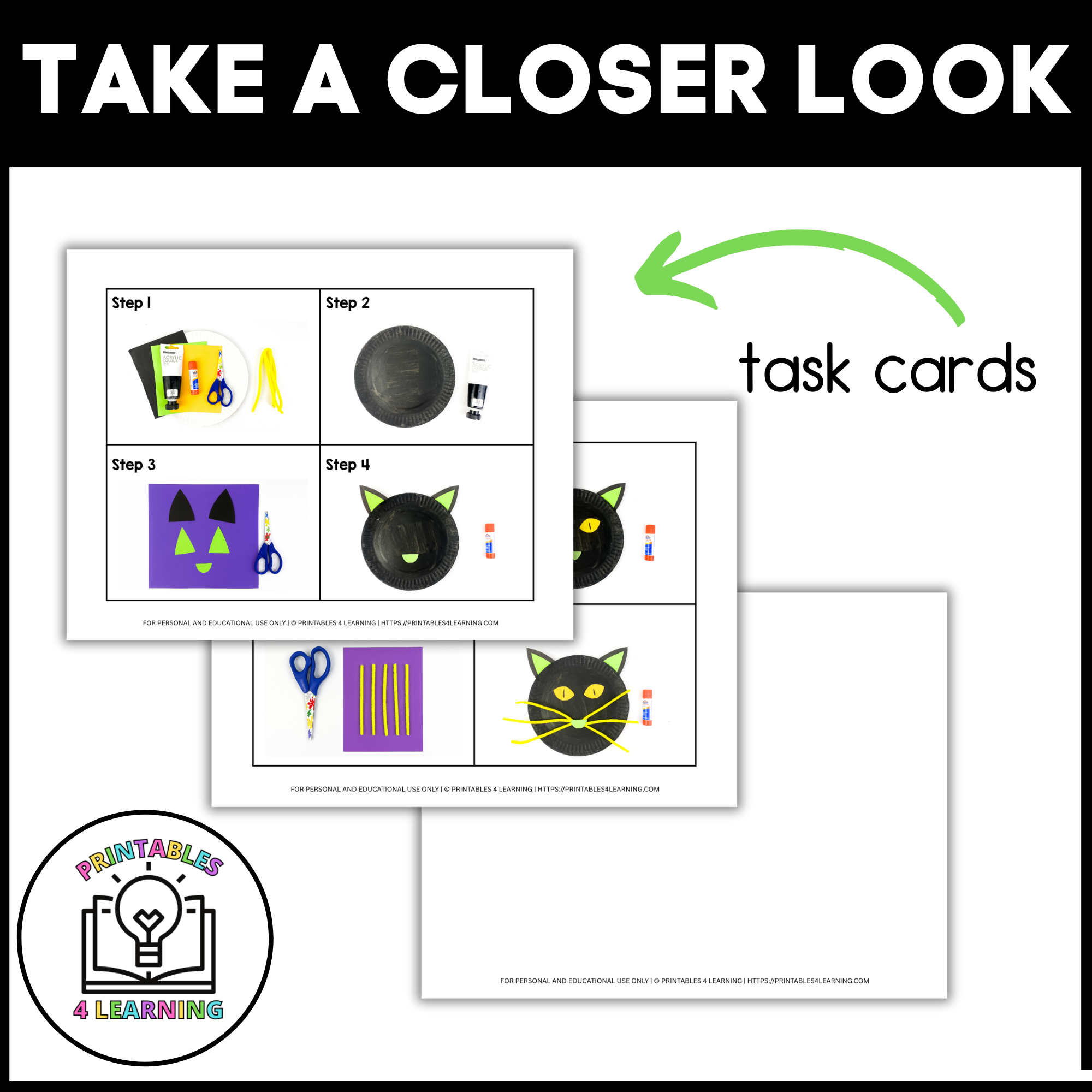 Perfect for October classroom projects, art centers, or thematic literacy tie-ins, this easy-to-follow craft lets kids build their own black cat using simple materials and clear, step-by-step visual instructions. With single-step task cards and a printable template, students can work independently or in small groups while building important fine motor and sequencing skills.